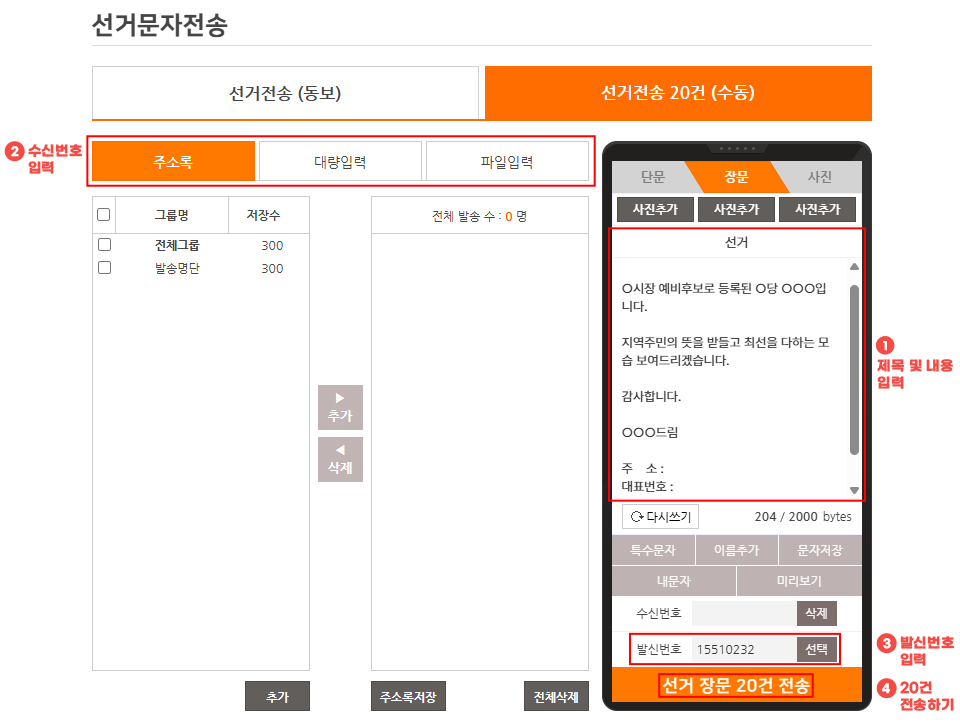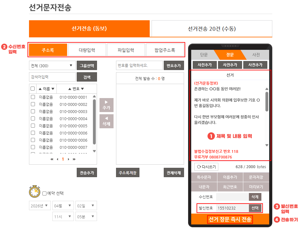 * °øÁ÷¼±°Å¹ý¿¡ µû¸¥ ¹®ÀÚ ¹ß¼Û ±ÔÁ¤À» ÁؼöÇÒ ¼ö ÀÖµµ·Ï Çʼö ±âÀç»çÇ×ÀÌ ÀÚµ¿À¸·Î »ðÀԵ˴ϴÙ.